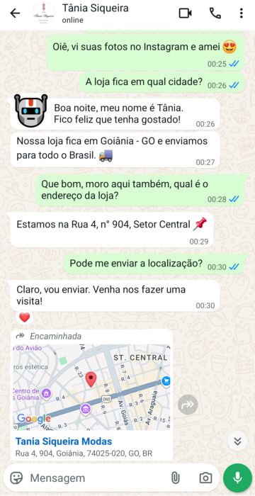 - Responde a perguntas e comentários instantaneamente
